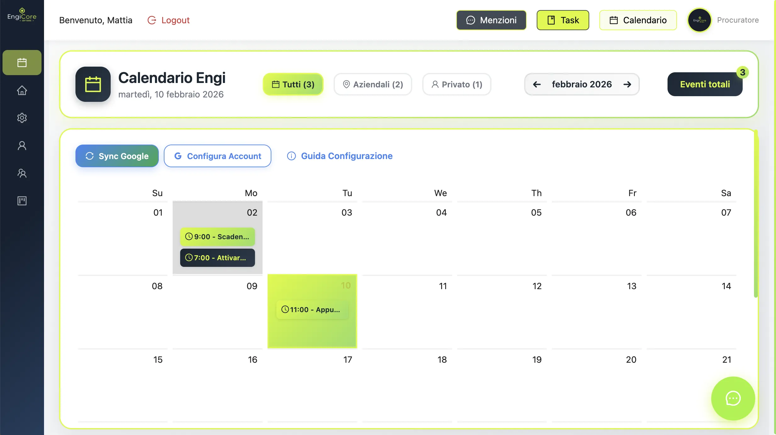 Aggiornamento live sui task da svolgere con priorità chiare, notifiche sincronizzate con Google Calendar.