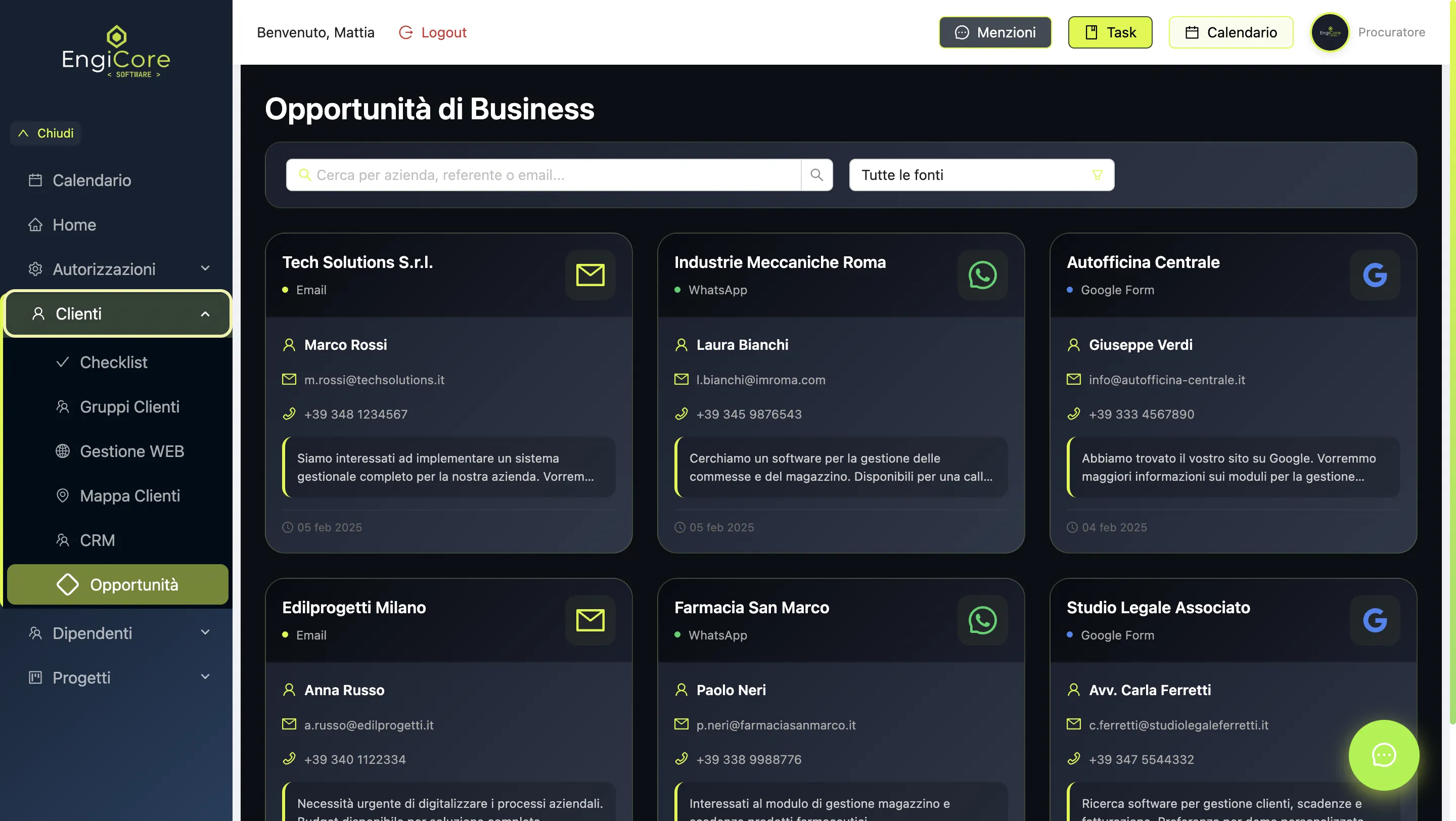 Report AI sui clienti, Email targettizzate, Template personalizzati, Storico completo chiamate,appuntamenti e Tracciamento mail.